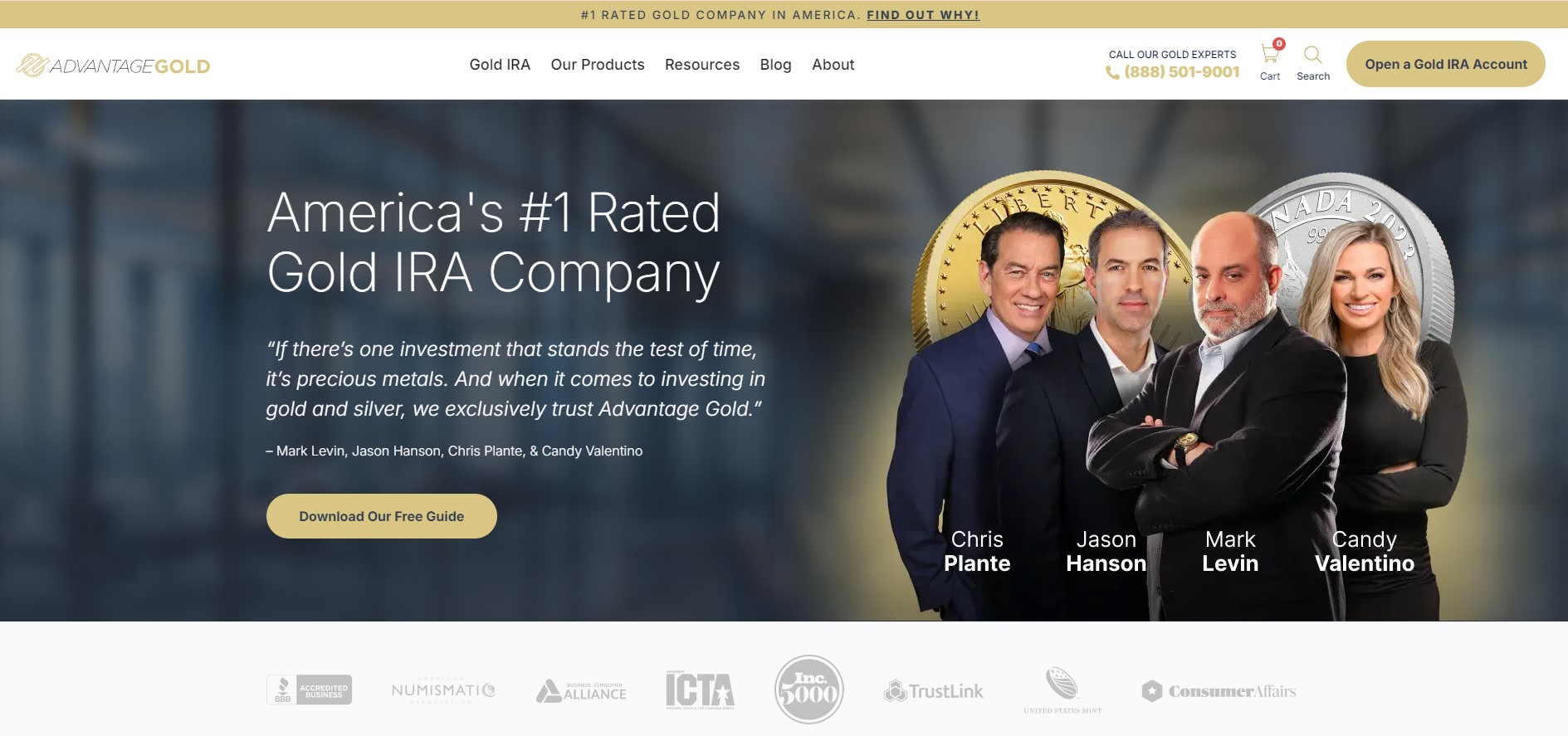With its headquarters in Austin, Texas, Advantage Gold was established in 2014 as a leading company in the precious metals industry specializing in Gold IRAs.